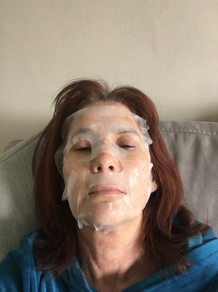 2.00 pm – My daughter had sent me a moisturising face mask by Simple as I have dry and sensitive skin. I had not used this before and didn’t know what to expect. It was a folded, heavily moisturised mask in a sachet. I unfolded it as instructed and placed it over my face. Set my phone for a 15 min alarm and then I lay back and relaxed. The spa music was playing through the TV and by then I truly felt as though I was at a spa.
